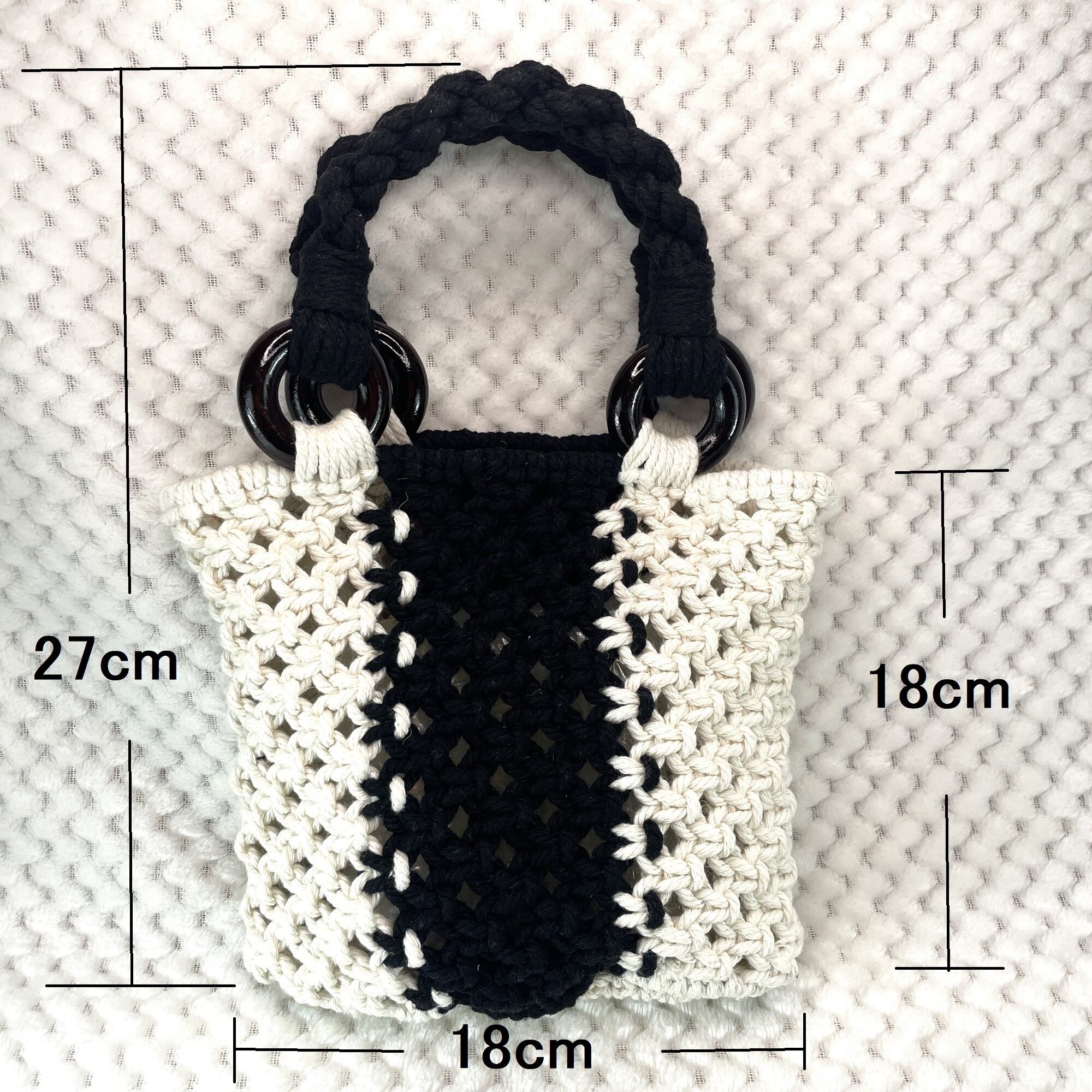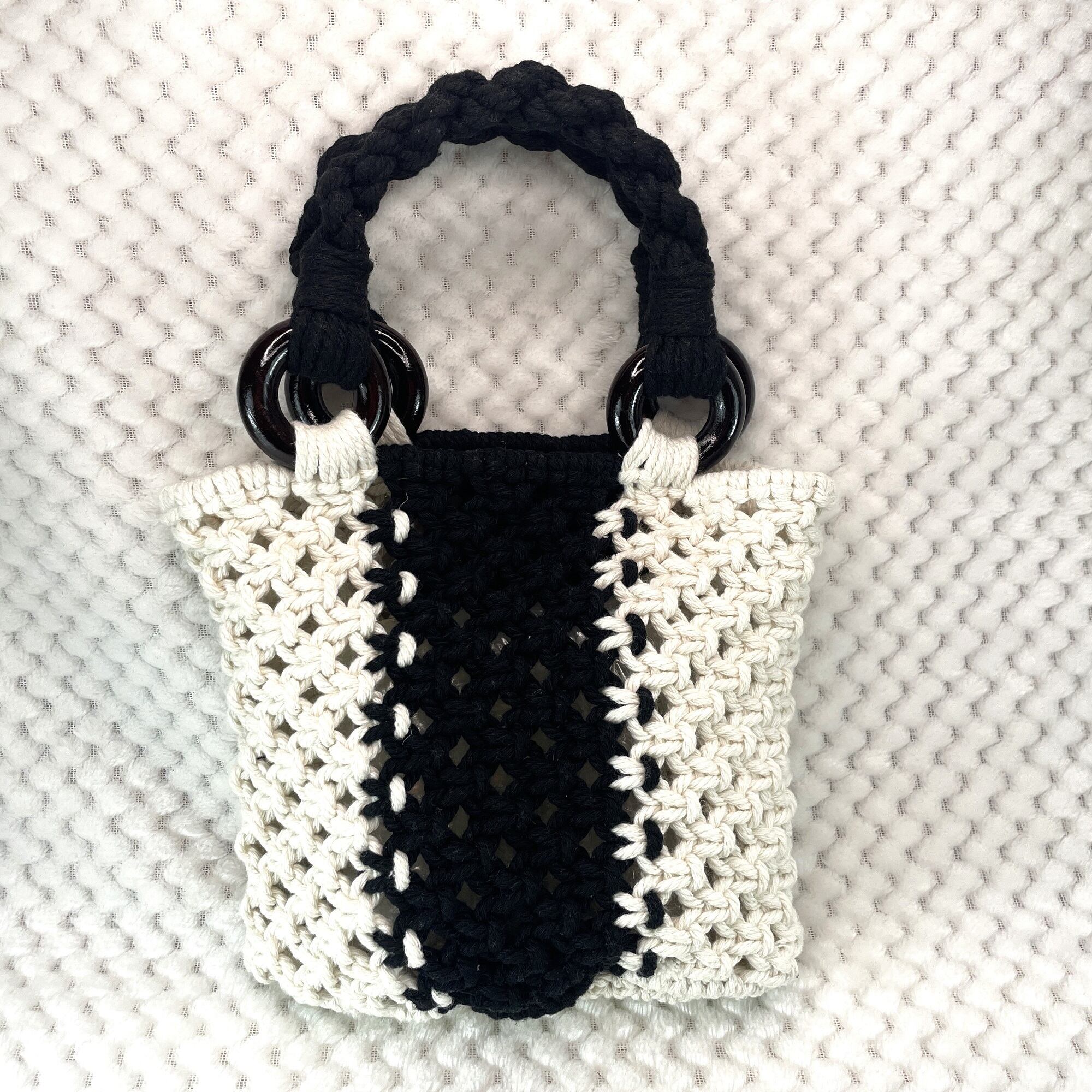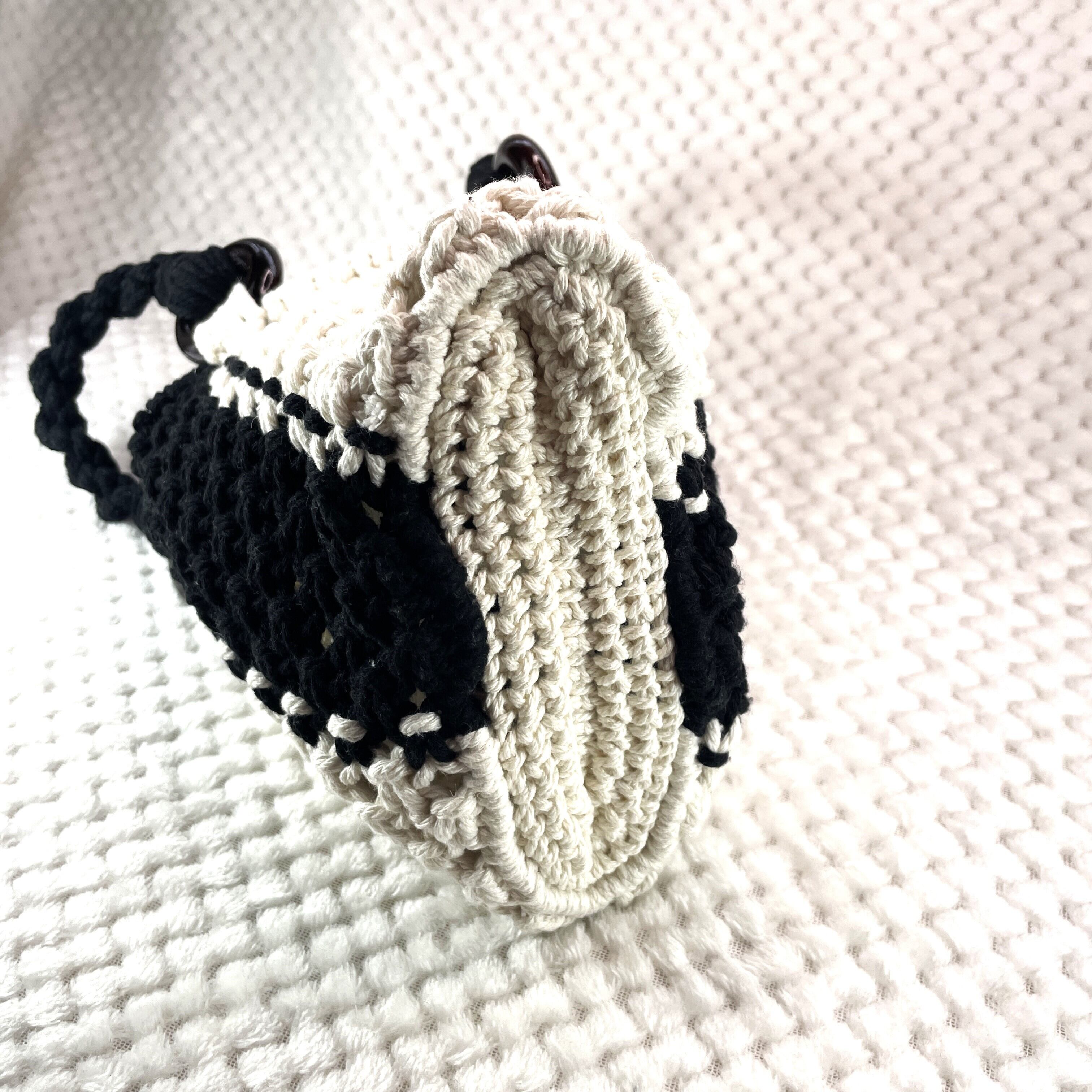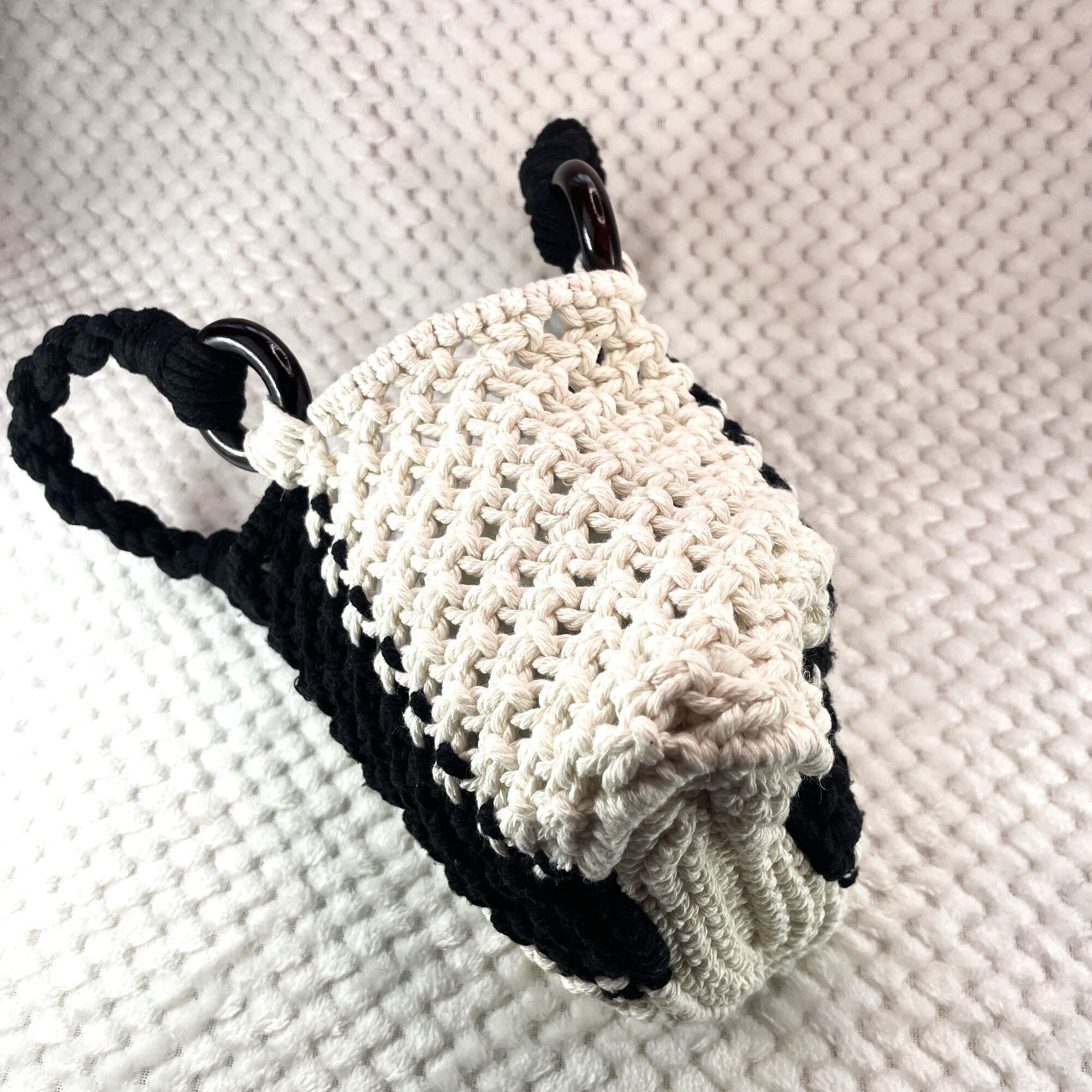 [公式]マクラメ編みNo11白黒小さなバッグのご紹介です。