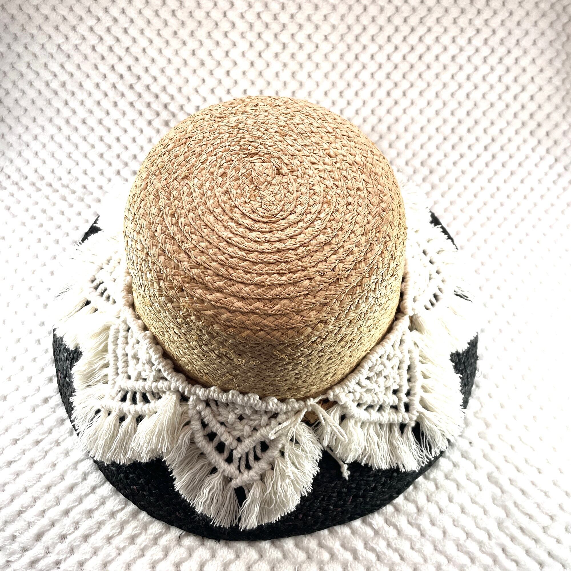 [公式]マクラメ編みNo12 帽子飾り(簡単リメイク)のご紹介です。