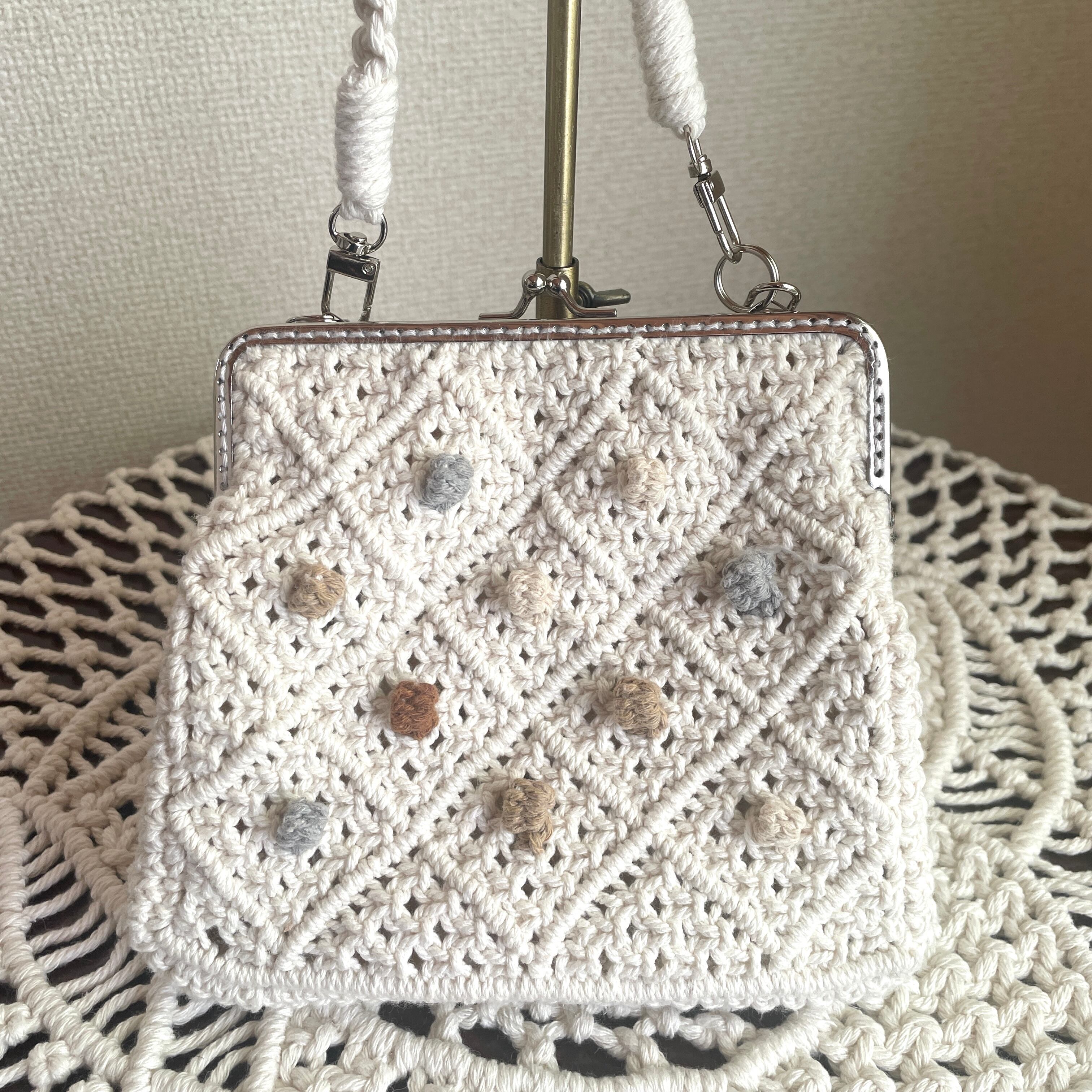 このポシェットは、マクラメ編みに