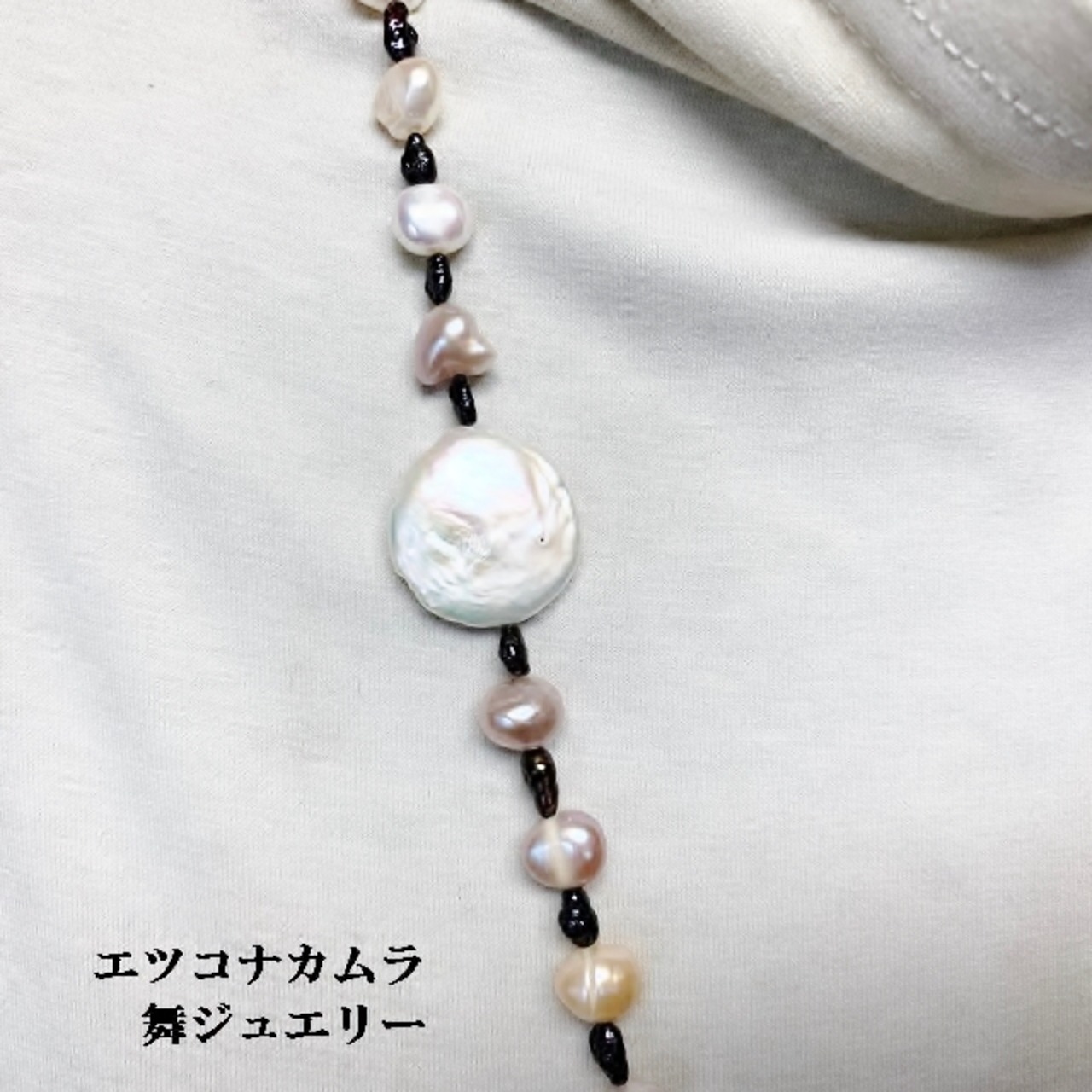 さりげないロングネックレスですが、控えめな個性が洋服やご本人を、引き立ててくす。質の良い材料にもかかわらず、かなりリーズナブルなお得な商品です。当アトリエのオリジナルなので、お買い上げ後も長くアフターケアーをさせていただきます。