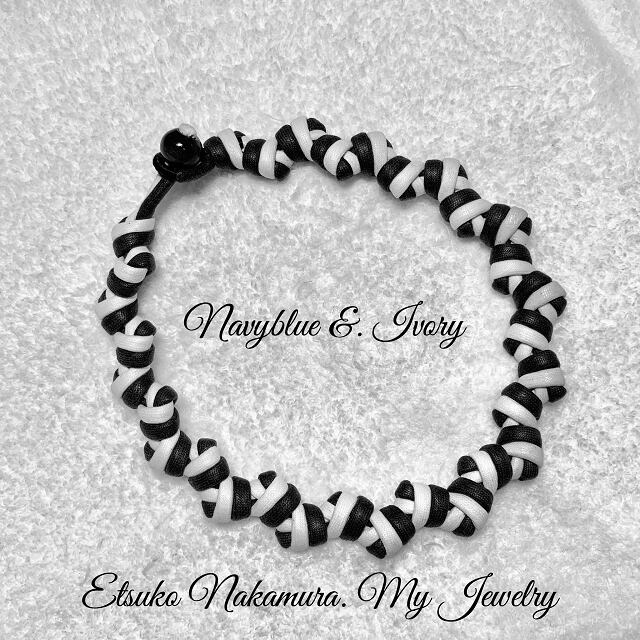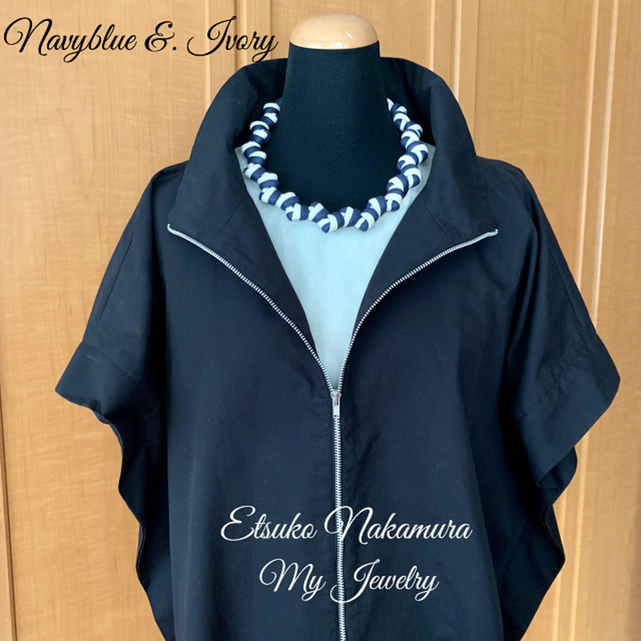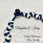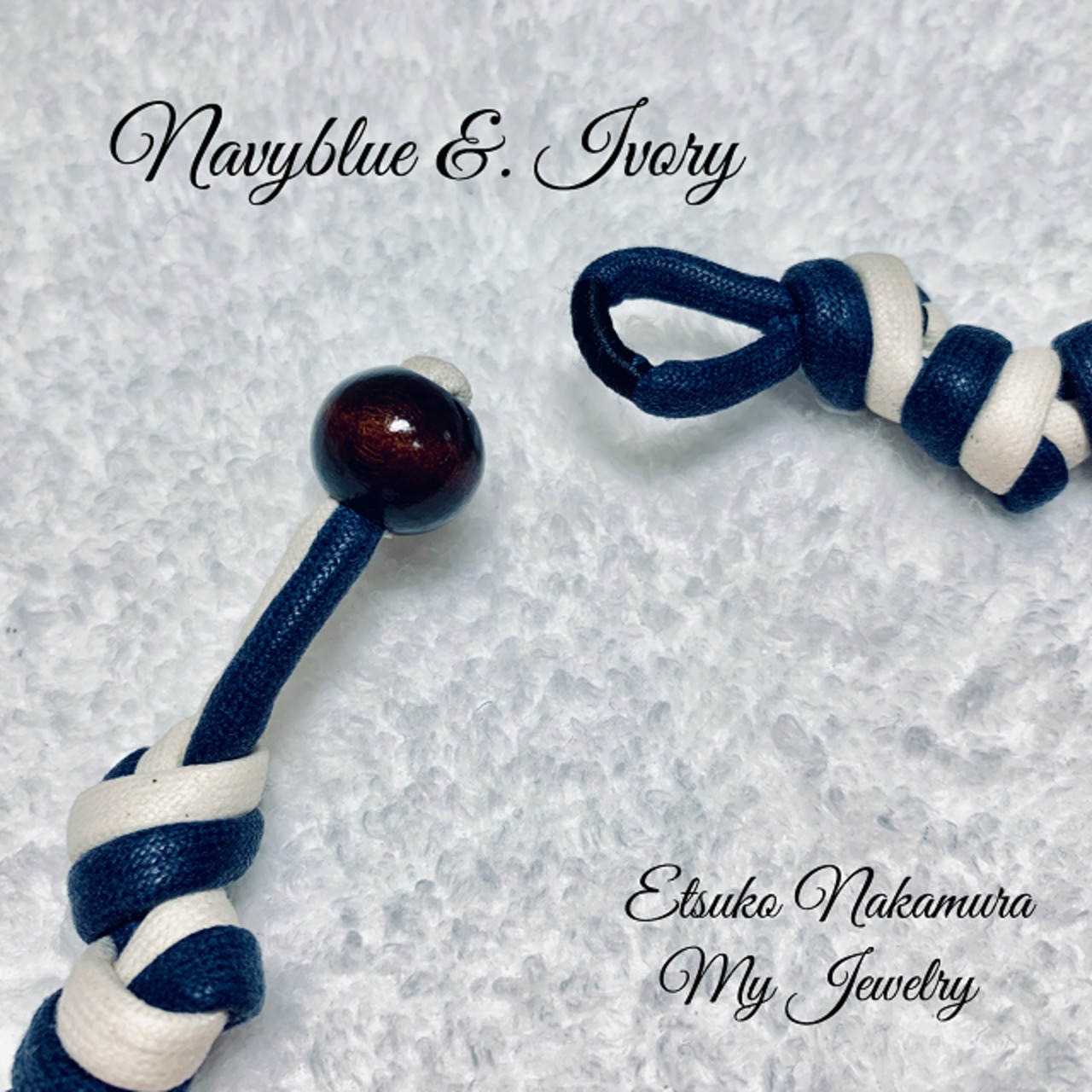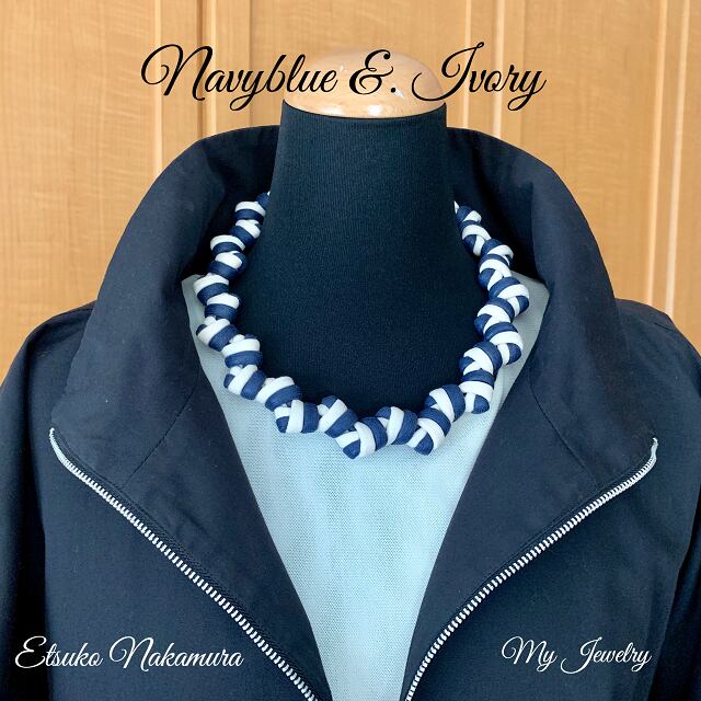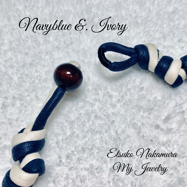 ネイビーブルーとアイボリーの二本取りの、さわやかスッキリなマクラメ編みネックチョーカーです。