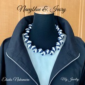 さわやかネイビーブルーとアイボリーのマクラメ編みチョーカー