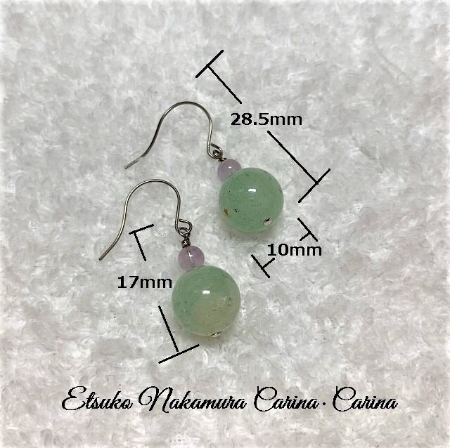 優しい色味のヒスイの10ミリ玉とラベンダーアメシストの小粒玉のピアス。