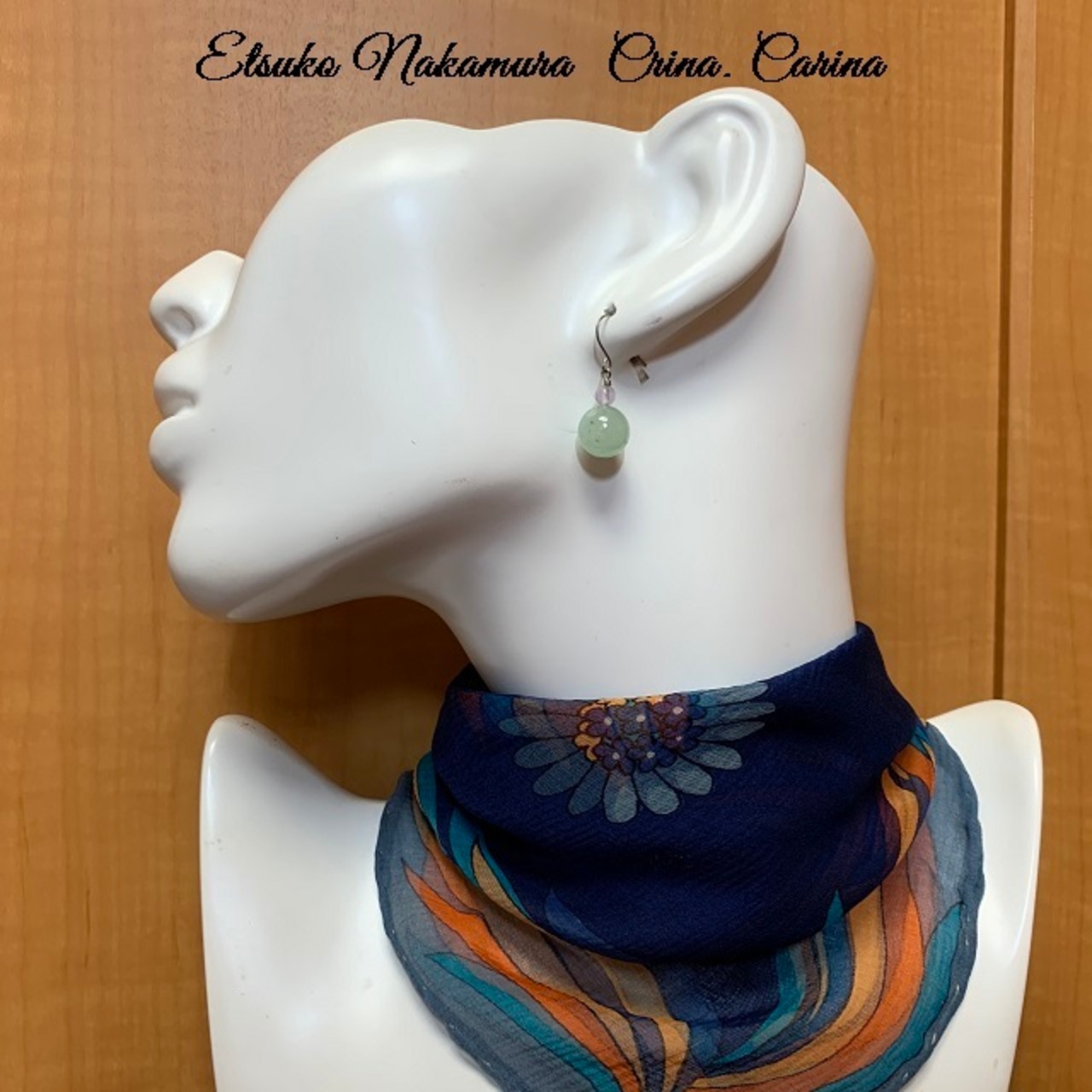 ヒスイの丸玉だけだと少々地味になりがちですが、甘いラベンダーアメシストが加わるだけで、華やかさが加わります。
