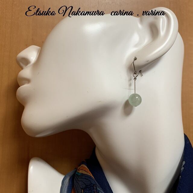 ひすいの丸玉一つですと、大人しくなるため活動的、モダンさを出すため、Tピンを利用して長さを出し、ブラタイプにしました。