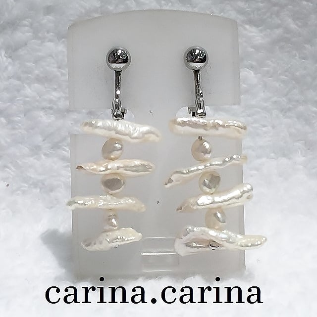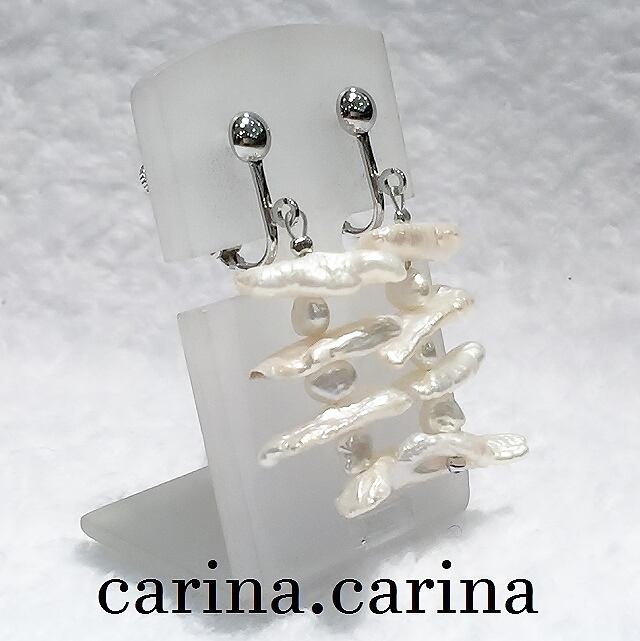 細長タイプの淡水パールと可愛らしい小さな淡水との、交互の組み合わせです。