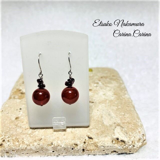 カーネリアン&ガーネットさざれ石2粒ピアス・イヤリング