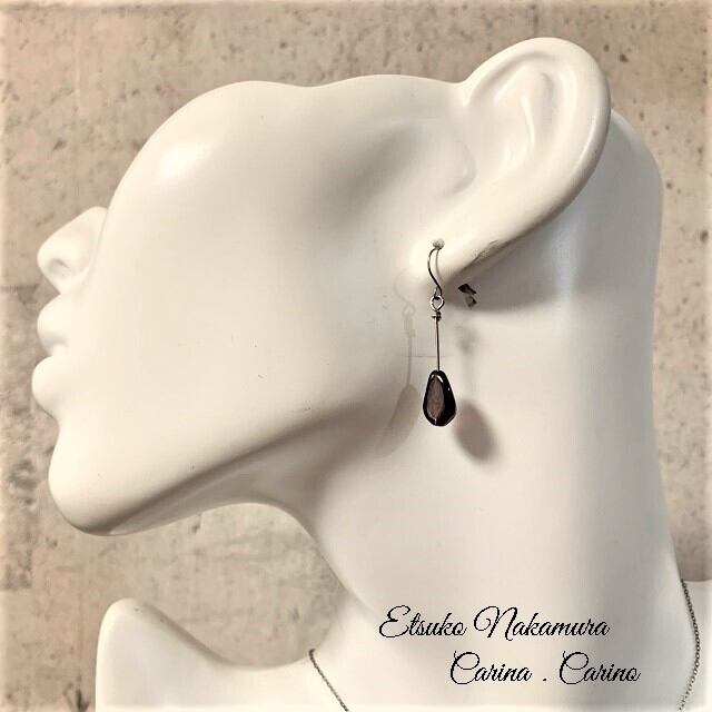 深みある上質なガーネットロングピアス ・ イヤリング