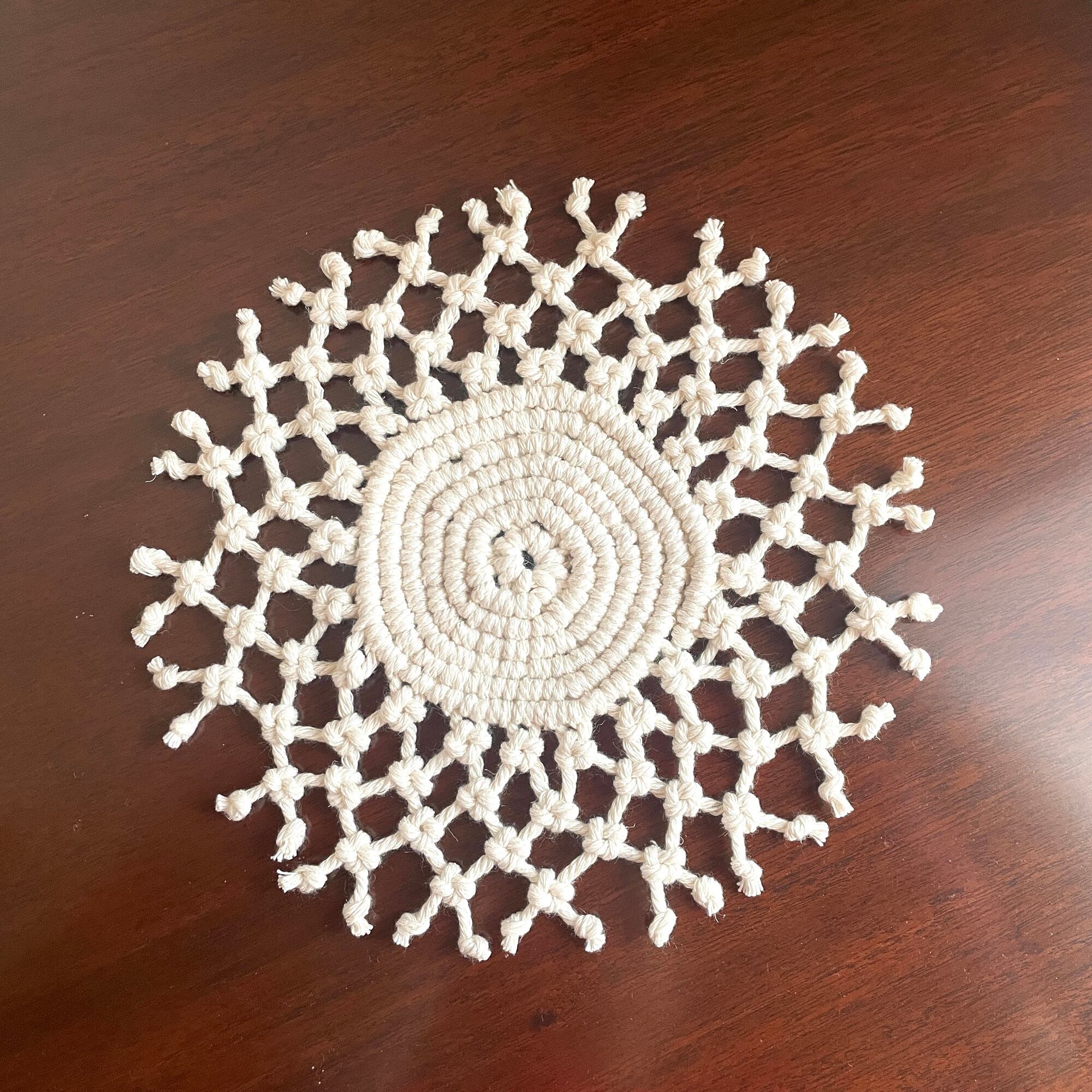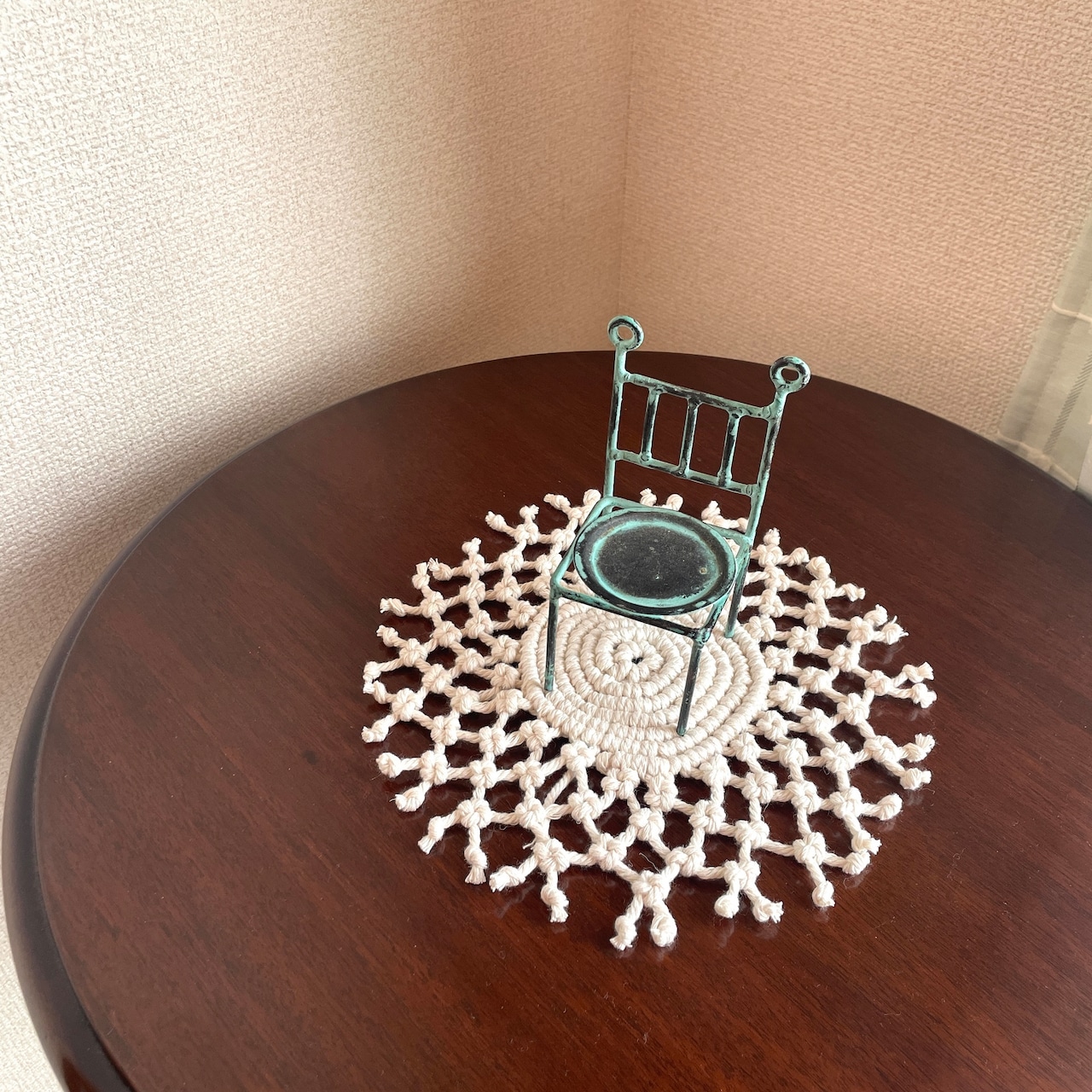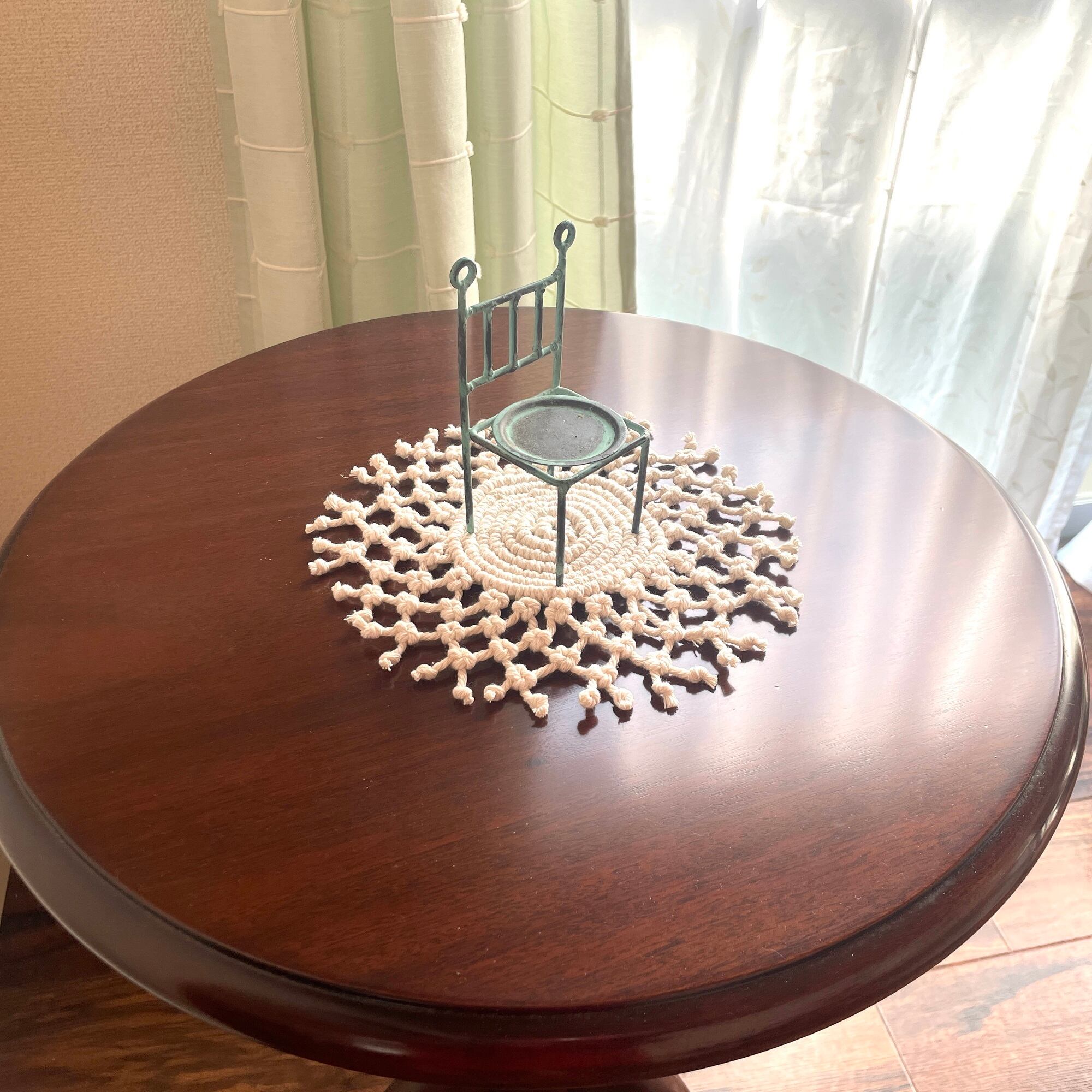 手作りの温かみが感じられるマクラメ編みテーブルセンターをご紹介します。
