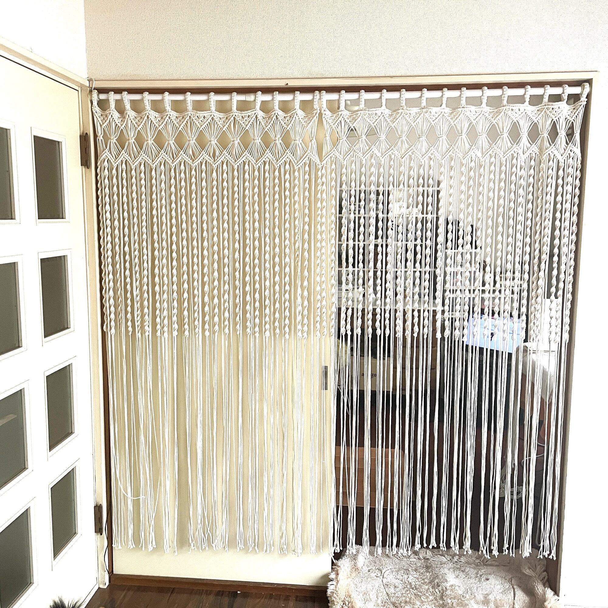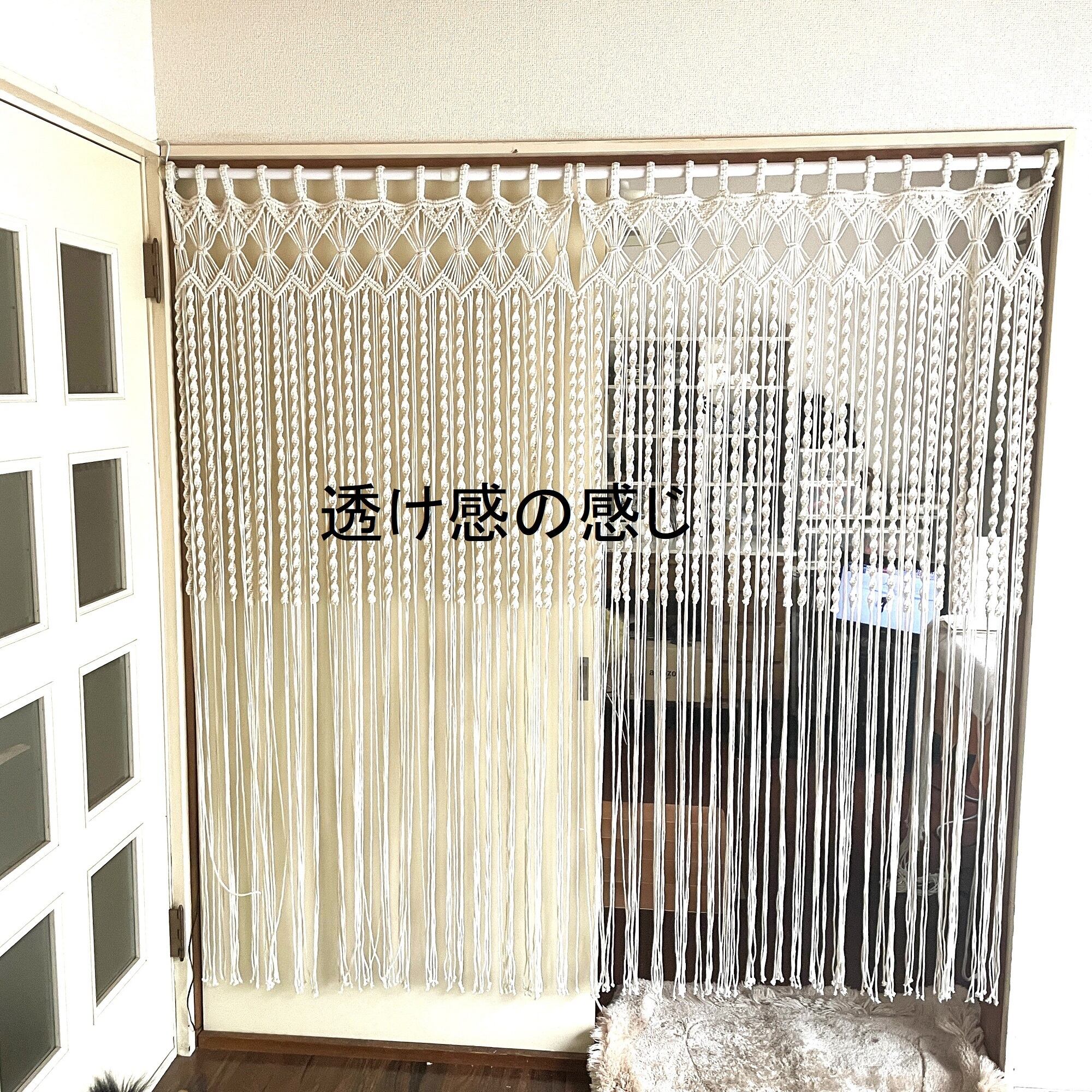 手仕事の温もりを感じるこのアイテムは、あなたの空間をおしゃれに仕切ったり、タペストリーとして楽しめる多機能なデザインです。